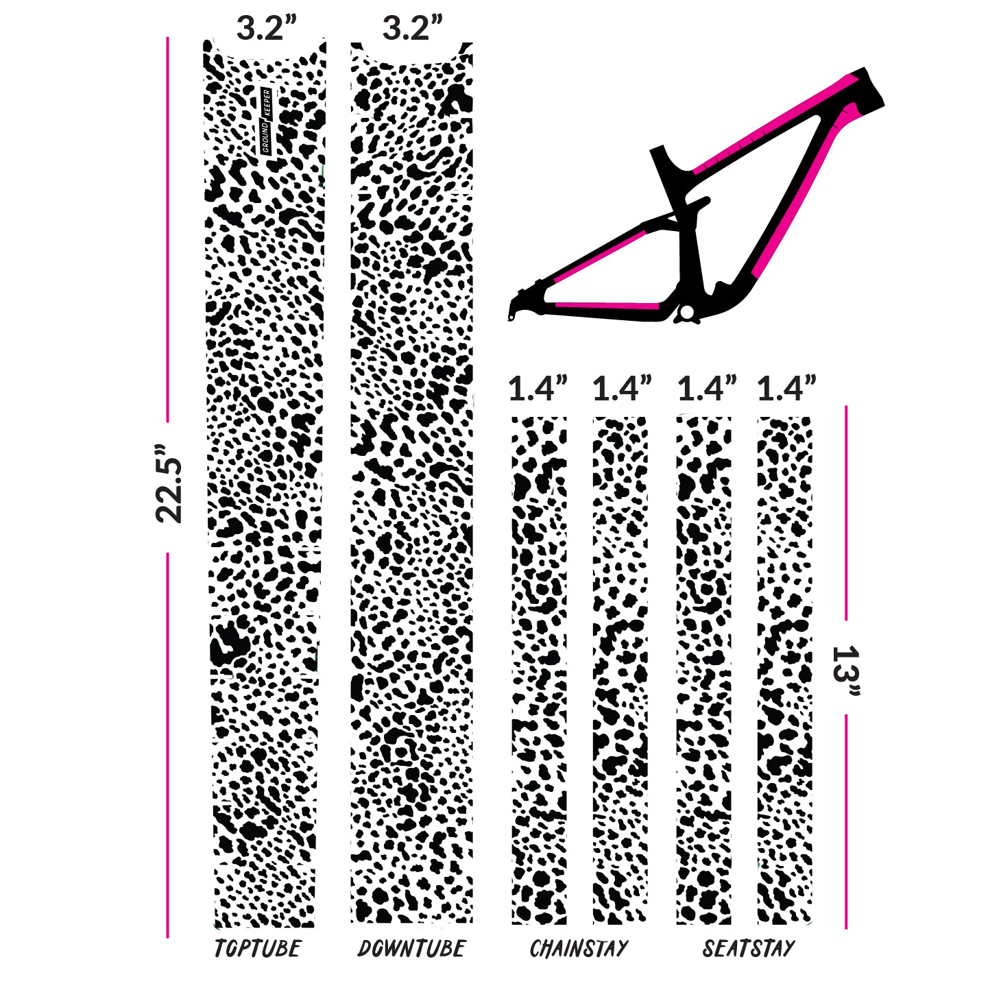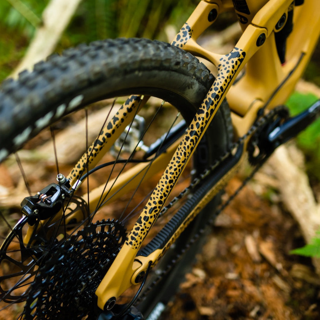 Our Cheetah print is guaranteed to make you 20% faster and 100% feistier. The kit is clear so your frame will be visible.