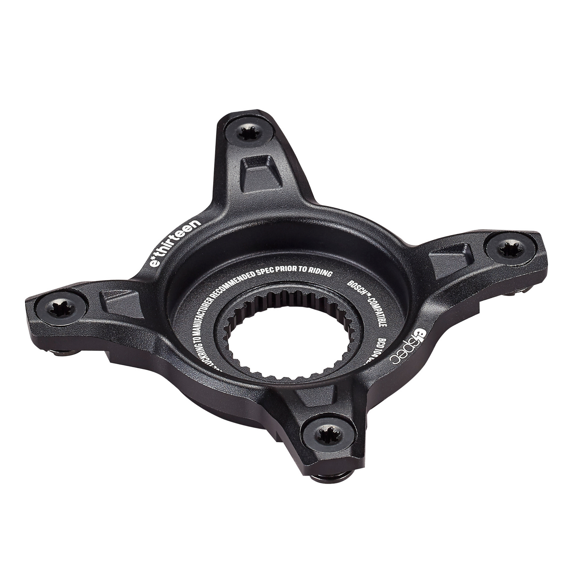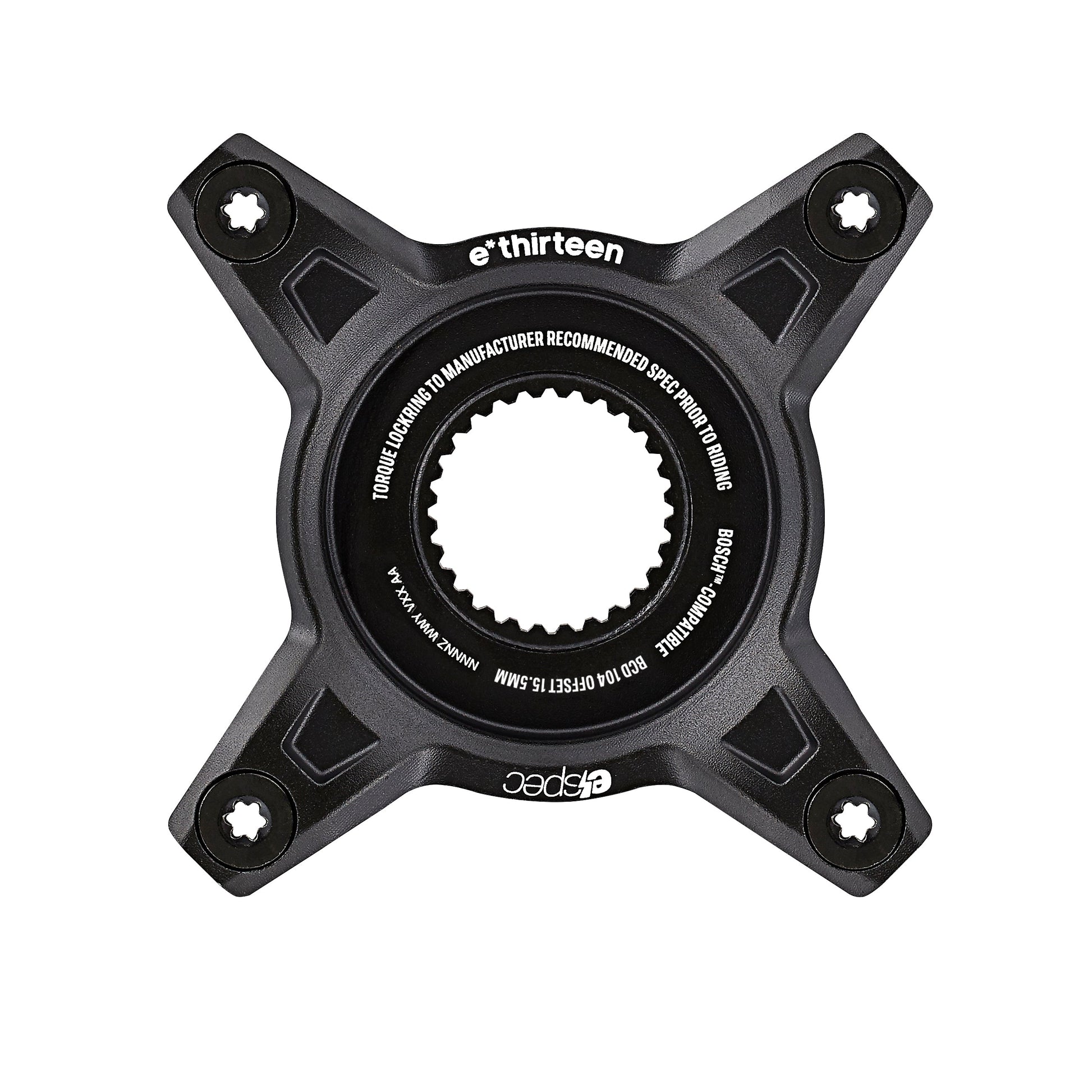 Upgrade your e-bike with e*thirteen's 104 BCD Spider, designed for seamless compatibility and efficiency. This spider enables the use of any 4-bolt standard chainring, offering a practical solution for cost-effective and eco-friendly chainring replacements. Made from durable 6-series alloy, it balances lightweight strength with the flexibility to pair with both long-lasting steel and lightweight alloy chainrings. Compatible with Bosch Gen4, Fazua Ride 60, Shimano EP8, and TQ HPR50 systems, it's the ideal choice for enhancing your e-bike's performance.