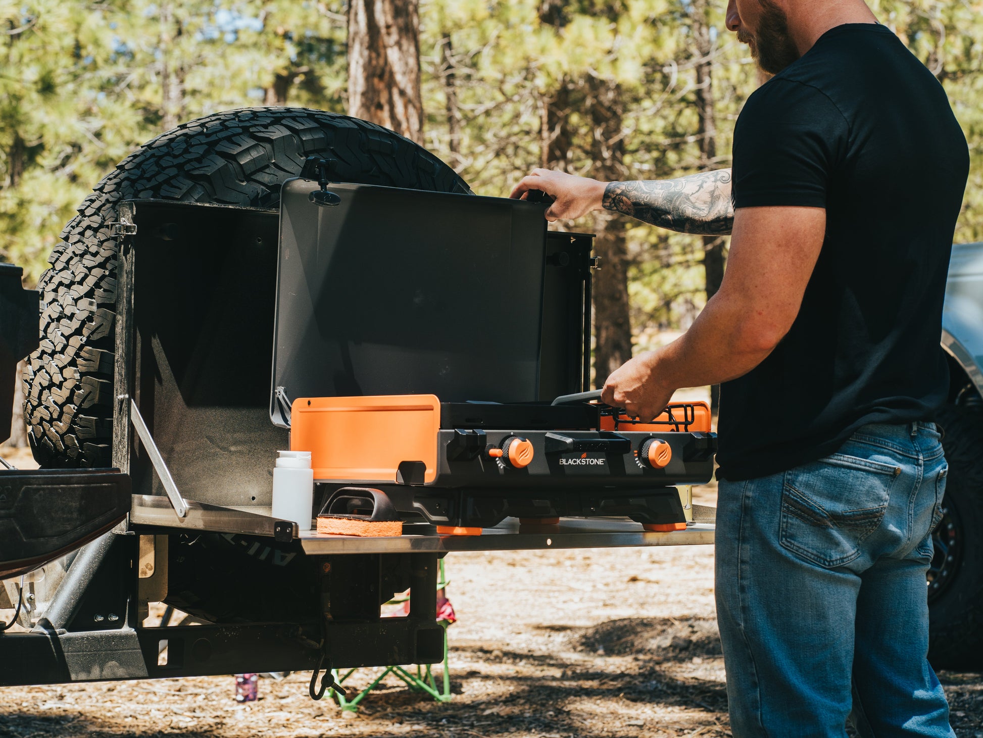 RiG'd MegaTable™ drop down camp table contains the same design DNA as our time-testedUltraTable™while expanding its work surface to accommodate larger cooking gear like aBlackstone® griddle, Traeger® Tailgater Grill, or any other use case that may benefit from a larger table.