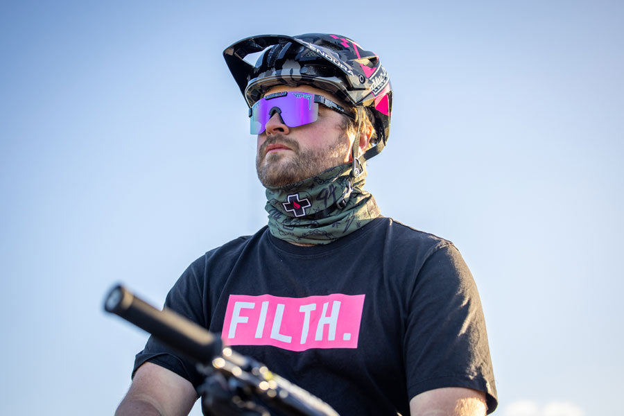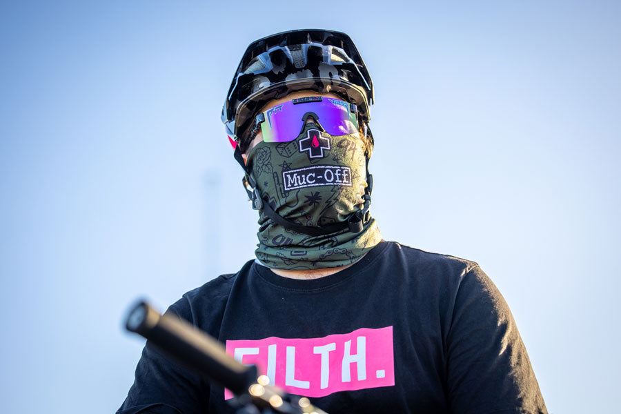 Muc-Off Lightweight Neck Gaiter - Green Punk. Muc-Offs Lightweight Neck Gaiter is a neck shield that can be worn all year round to keep the elements at bay. The stretchy fabric provides an extra level of protection from the elements and dust when pulled up over your face and nose while the seamless construction offers epic levels of comfort all while looking badass.