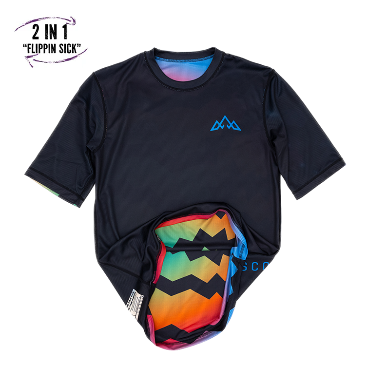 Introducing the TASCO Mullet Reversible Ride Jersey, the ultimate choice for riders who like to switch up their style! This innovative, reversible jersey gives you two distinct looks in one versatile piece of gear. One side features a solid & subdued colorway—perfect for those focused, no-nonsense rides. Things get flippin real when you reverse it inside out, and you’ve got a burst of high-energy that scream fun and party laps, ideal for when you're feeling frisky and ready to take on the trails with more pizazz.