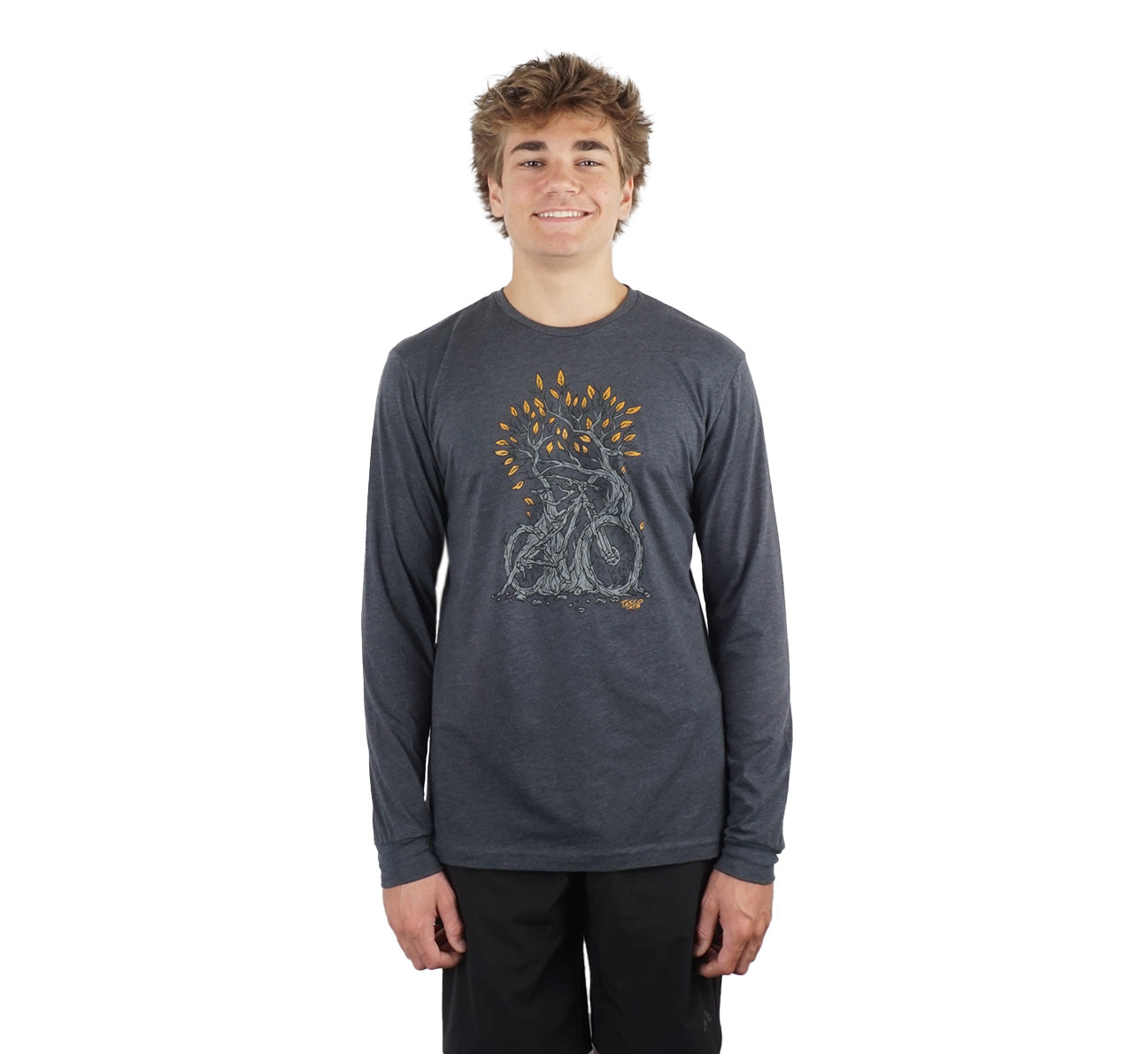 In order to make this premium long sleeve mountain bike inspired quality T-Shirt, we use a "tagless" ring spun combed cotton T-shirt as our base. All of our printing is done using environmentally friendly inks, which provide an extremely soft hand after printing. These inks are embedded into fabric, so that they yield a soft look, as well as feel. The end result is the softest, smoothest, best-looking short sleeve tee shirt available anywhere!