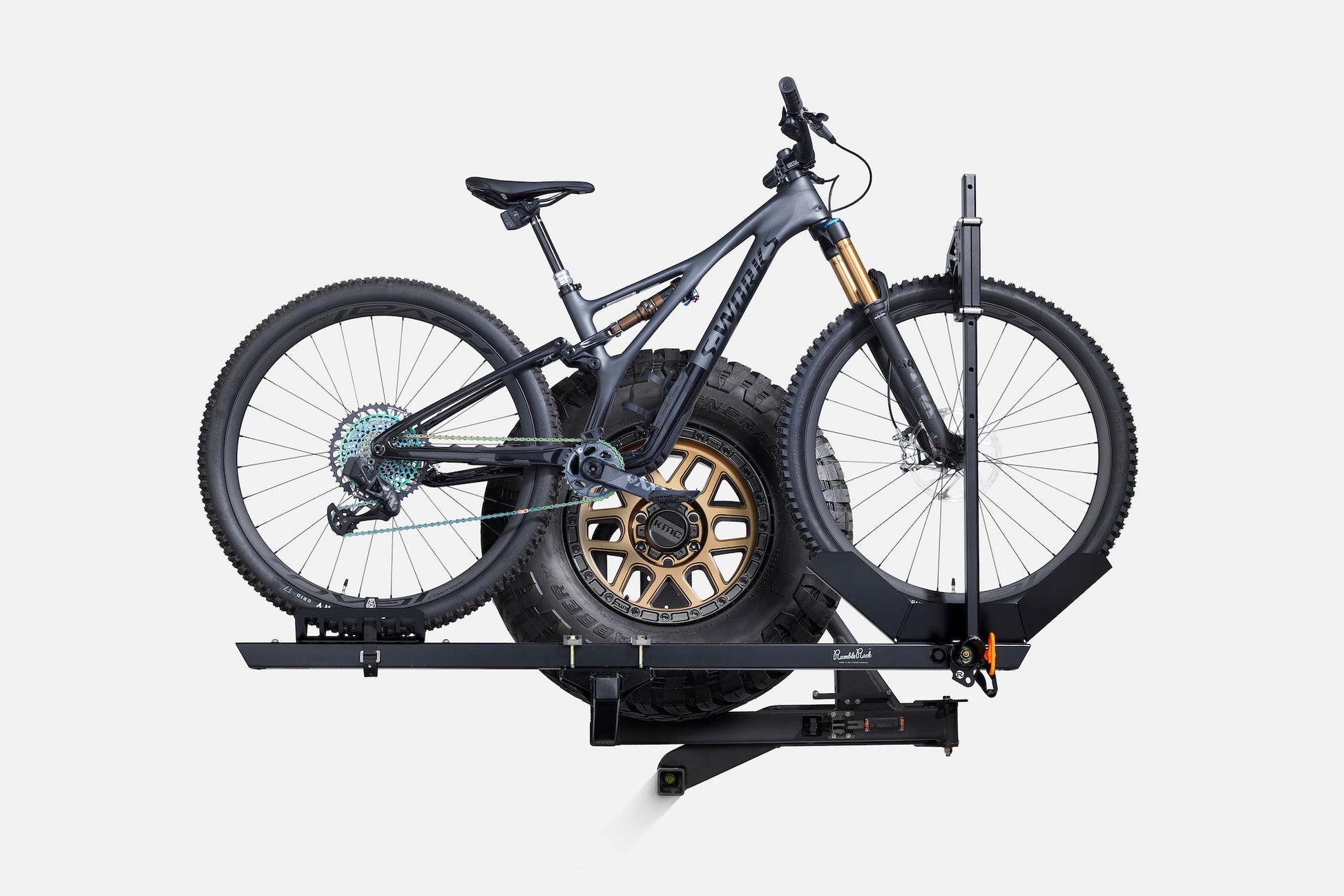 RambleRack® heavy duty hitch bike rack has mounting options designed specifically for use on the UltraSwing® or RambleSwing™ and off-road swing-out bumpers or as a static bike rack plugged straight into your hitch.