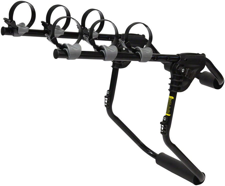 Saris Guardian Trunk Rack: 3 Bike Black. With the Saris Guardian trunk rack what you see is what you get. Made with steel sourced from America’s heartland the Guardian is tough enough to stand-up to the elements yet gentle on bikes. Easy-to-use bike hold downs with ratcheting straps grip the bike’s frame while rack straps equipped with spring-loaded buckles ensure a snug rack-to-vehicle fit. This simple trunk rack fits most sedans hatchbacks and vans and comes completely assembled.