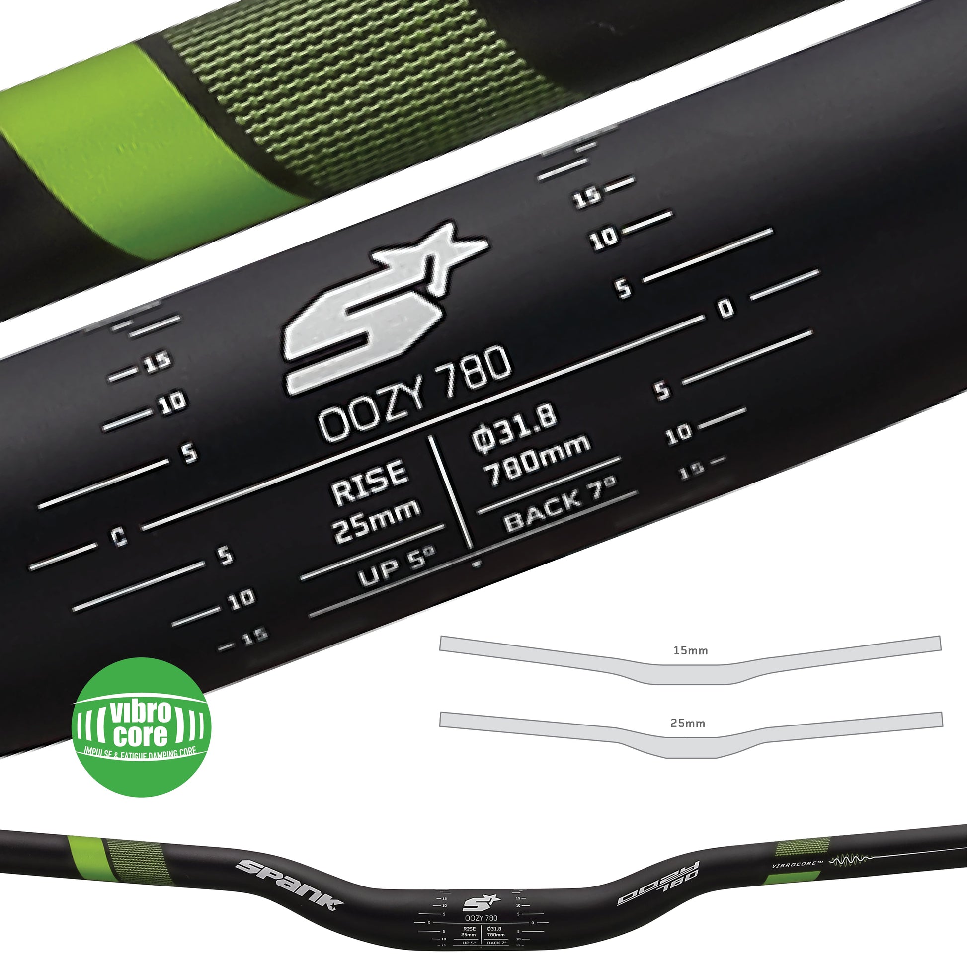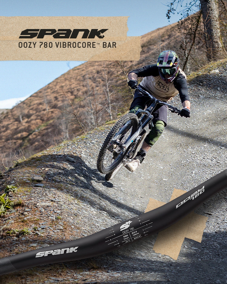 The Spank Industries Oozy 780 Vibrocore ™ handlebar is a lightweight alloy bar optimized for trail riders seeking the stiffness, responsiveness, and the durability of an alloy bar. Featuring Spank's proprietary Vibrocore™ foam technology, the injected foam provides vibration damping to reduce arm pump and hand-numbness on long rides over rough terrain.